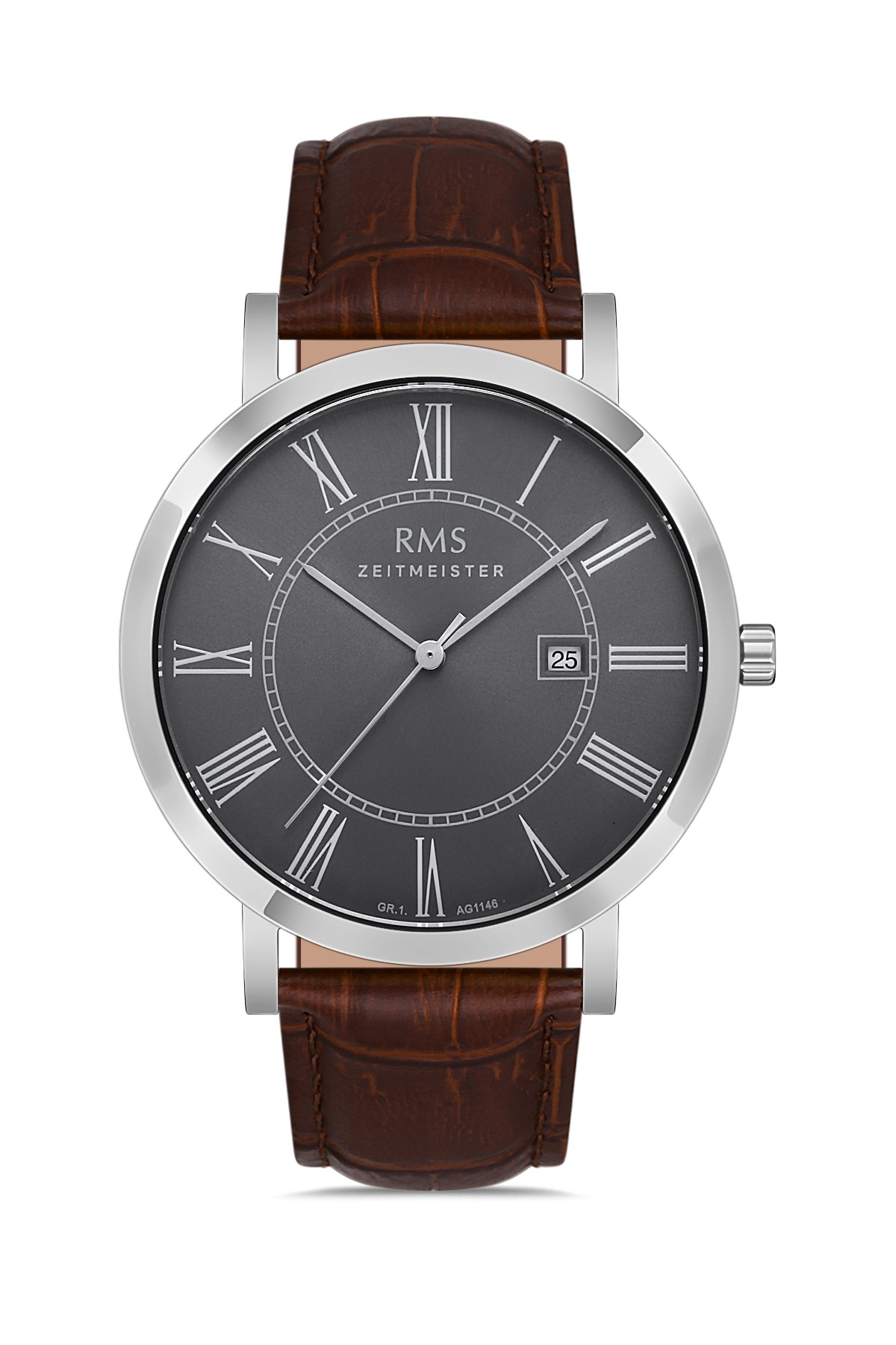Erkek - Takvi̇mli̇ - Gümüş - Gri̇ - Doğal Deri̇ Kordon - Kahverengi̇ - 3 Atm - Sertleşti̇ri̇lmi̇ş Mi̇neral Cam - Grand Romanson