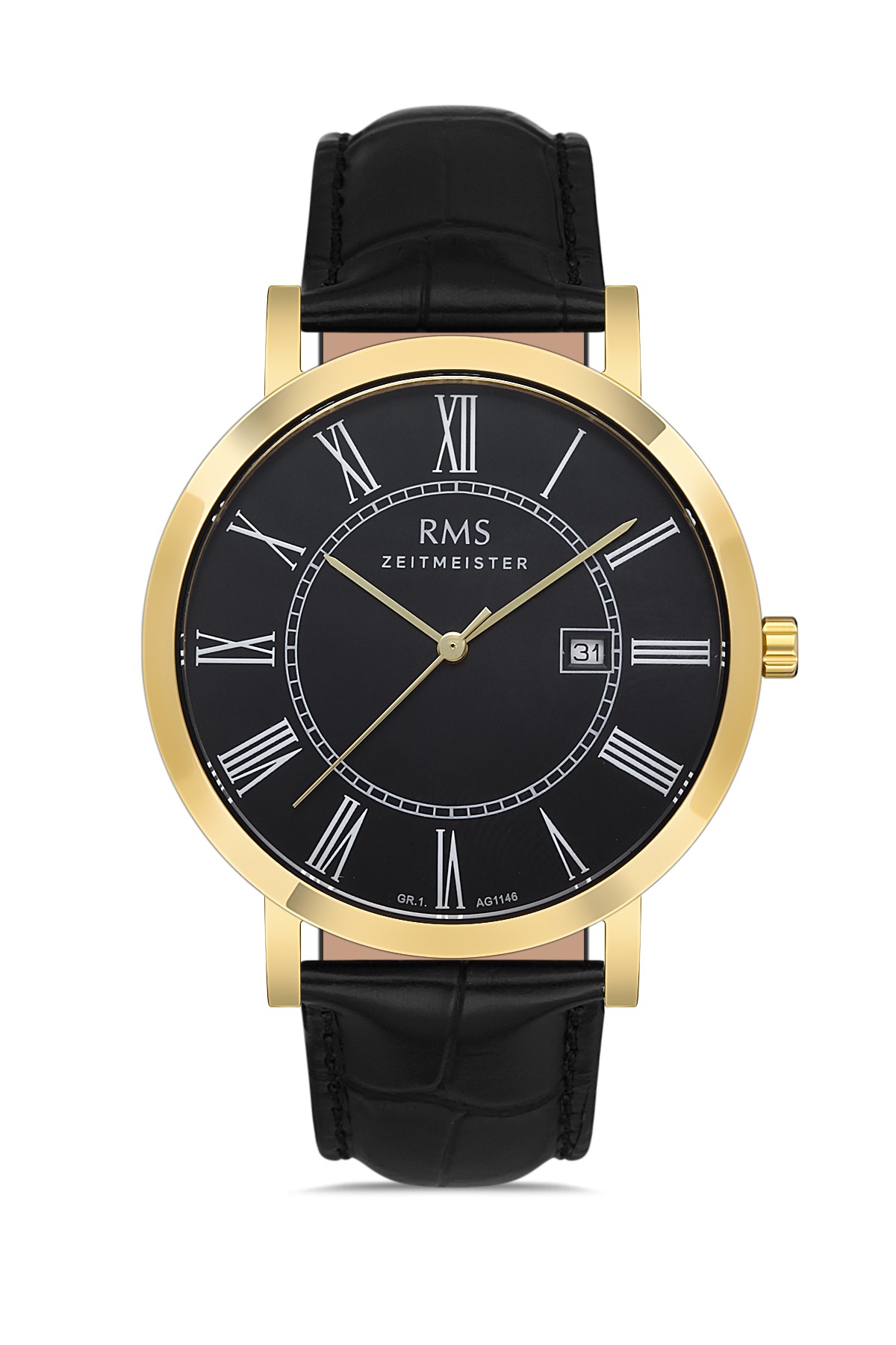 Erkek - Takvi̇mli̇ - Sari Beyaz - Si̇yah - Doğal Deri̇ Kordon - Si̇yah - 3 Atm - Sertleşti̇ri̇lmi̇ş Mi̇neral Cam - Grand Romanson