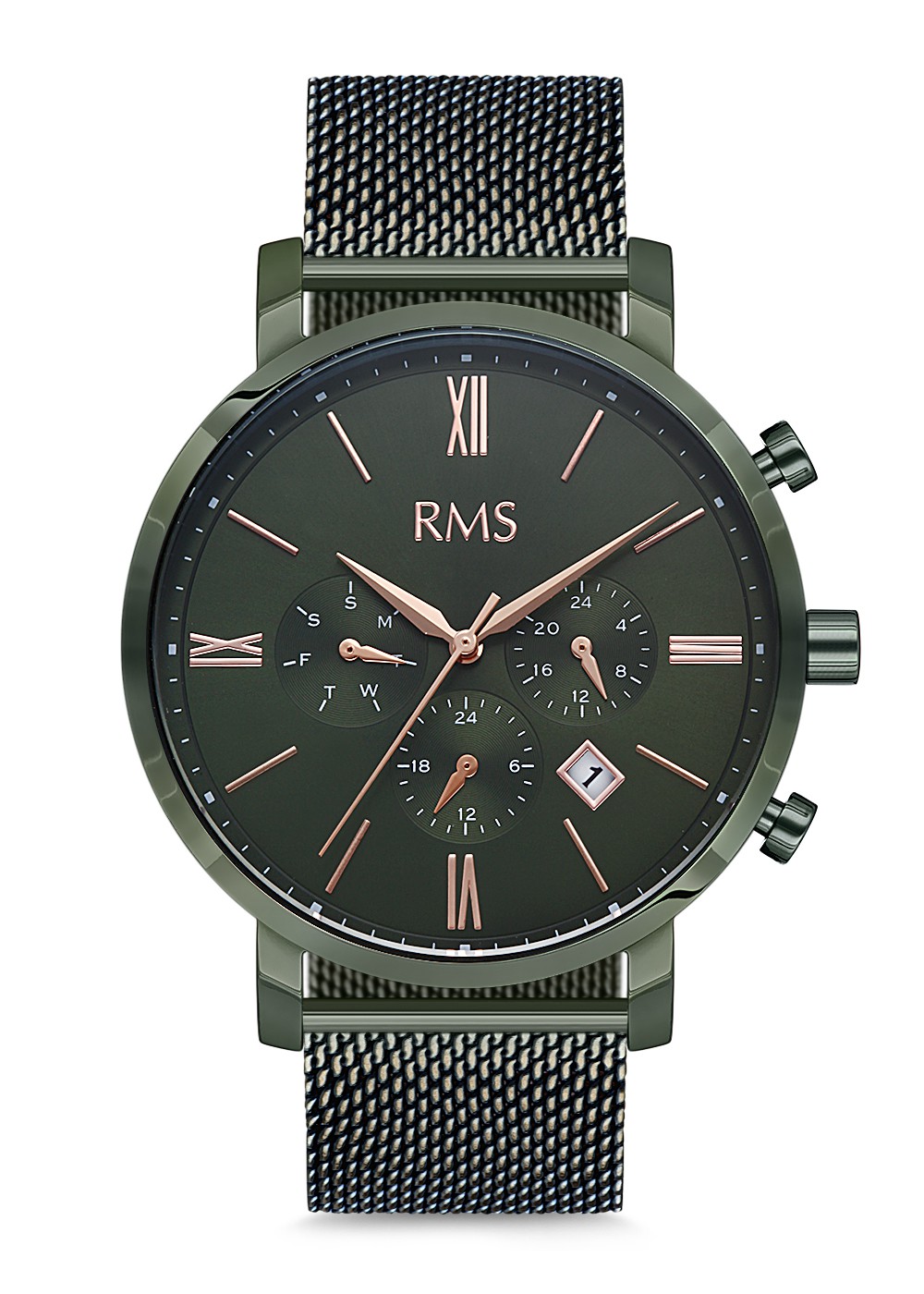 Erkek - Multi̇ Fonksi̇yon - Rose - Yeşi̇l - Çeli̇k Örme Kordon - 3 Atm - Sertleşti̇ri̇lmi̇ş Mi̇neral Cam - Grand Romanson