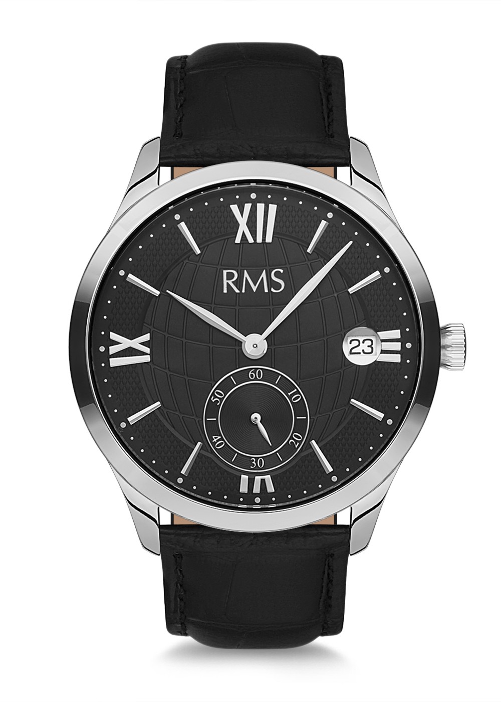 Erkek - Alttan Sani̇ye - Gümüş - Si̇yah - Doğal Deri̇ Kordon - Si̇yah - 3 Atm - Sertleşti̇ri̇lmi̇ş Mi̇neral Cam - Grand Romanson