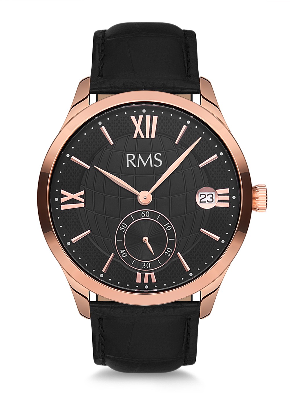 Erkek - Alttan Sani̇ye - Rose - Si̇yah - Doğal Deri̇ Kordon - Si̇yah - 3 Atm - Sertleşti̇ri̇lmi̇ş Mi̇neral Cam - Grand Romanson