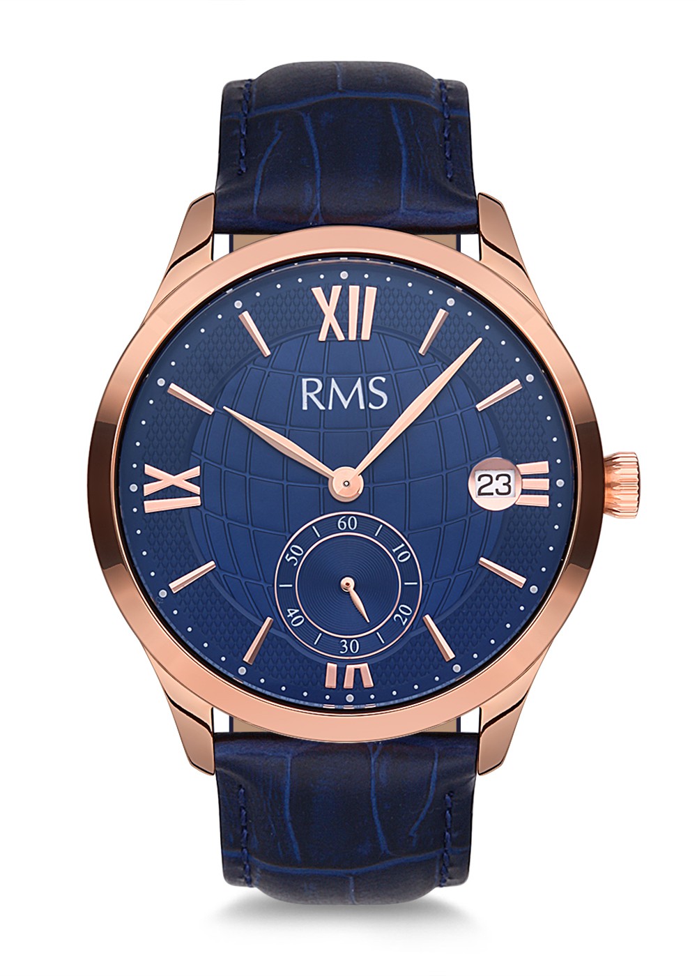 Erkek - Alttan Sani̇ye - Rose - Mavi̇ - Doğal Deri̇ Kordon - Mavi̇ - 3 Atm - Sertleşti̇ri̇lmi̇ş Mi̇neral Cam - Grand Romanson