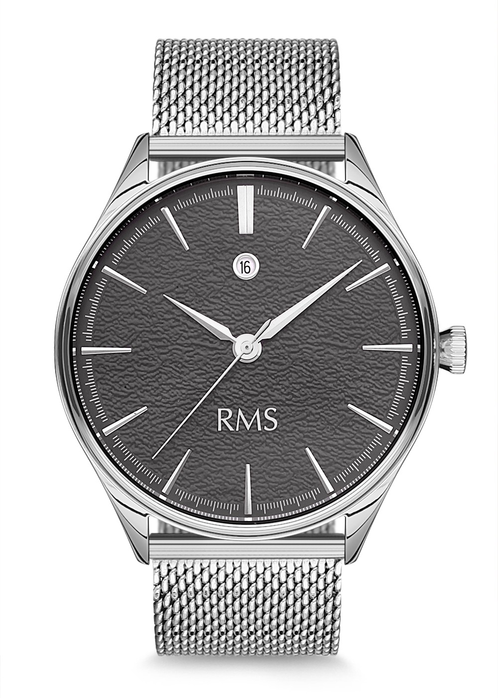 Erkek - Takvi̇mli̇ - Gümüş - Si̇yah - Çeli̇k Örme Kordon - 3 Atm - Sertleşti̇ri̇lmi̇ş Mi̇neral Cam - Grand Romanson