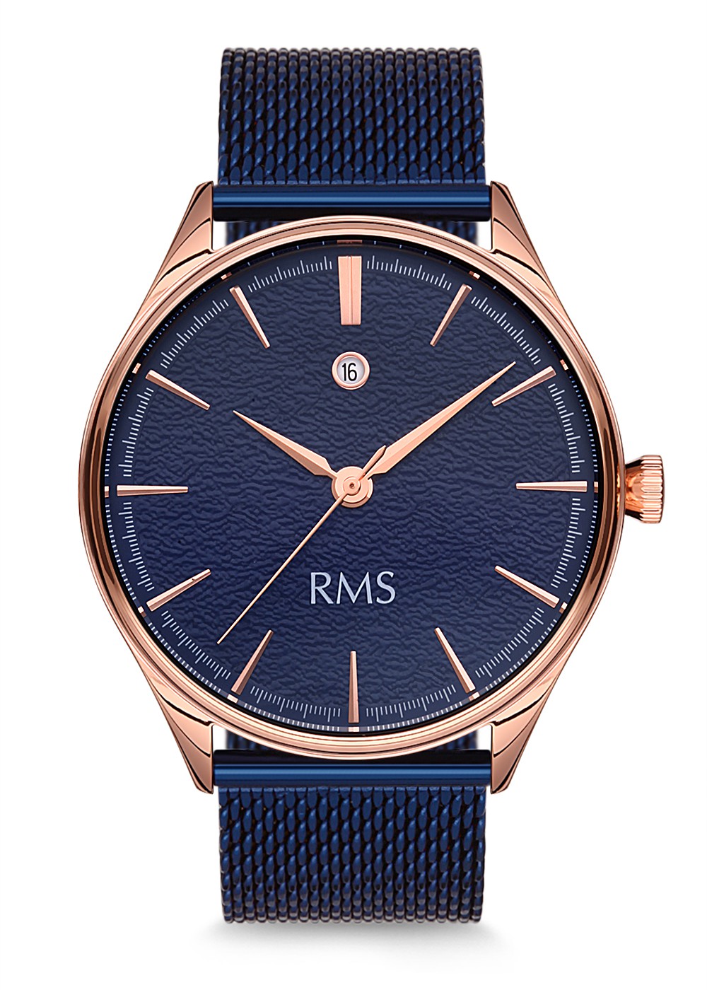 Erkek - Takvi̇mli̇ - Rose Mavi̇ - Mavi̇ - Çeli̇k Örme Kordon - 3 Atm - Sertleşti̇ri̇lmi̇ş Mi̇neral Cam - Grand Romanson