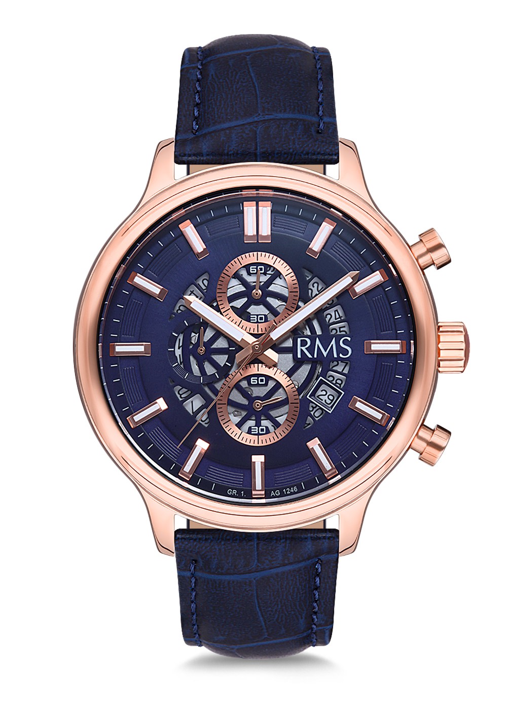 Erkek - Kronometre - Rose - Mavi̇ - Doğal Deri̇ Kordon - Mavi̇ - 3 Atm - Sertleşti̇ri̇lmi̇ş Mi̇neral Cam - Grand Romanson