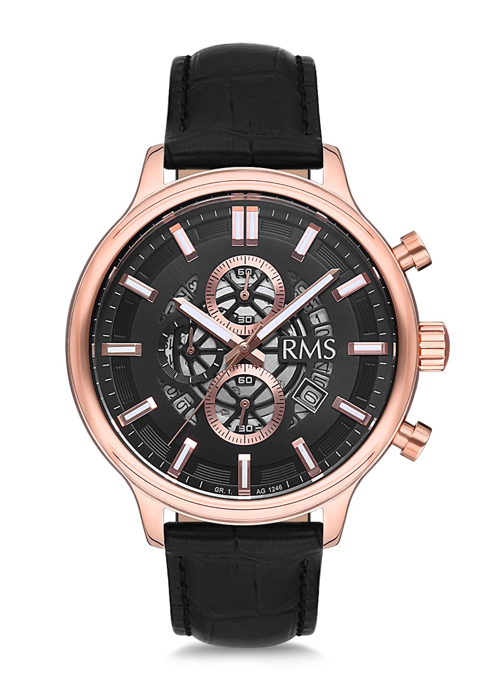 Erkek - Kronometre - Rose - Si̇yah - Doğal Deri̇ Kordon - Si̇yah - 3 Atm - Sertleşti̇ri̇lmi̇ş Mi̇neral Cam - Grand Romanson