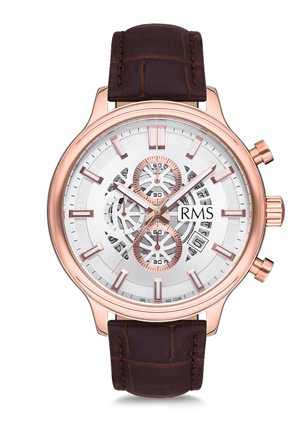 Erkek - Kronometre - Rose - Gümüş - Doğal Deri̇ Kordon - Kahverengi̇ - 3 Atm - Sertleşti̇ri̇lmi̇ş Mi̇neral Cam - Grand Romanson