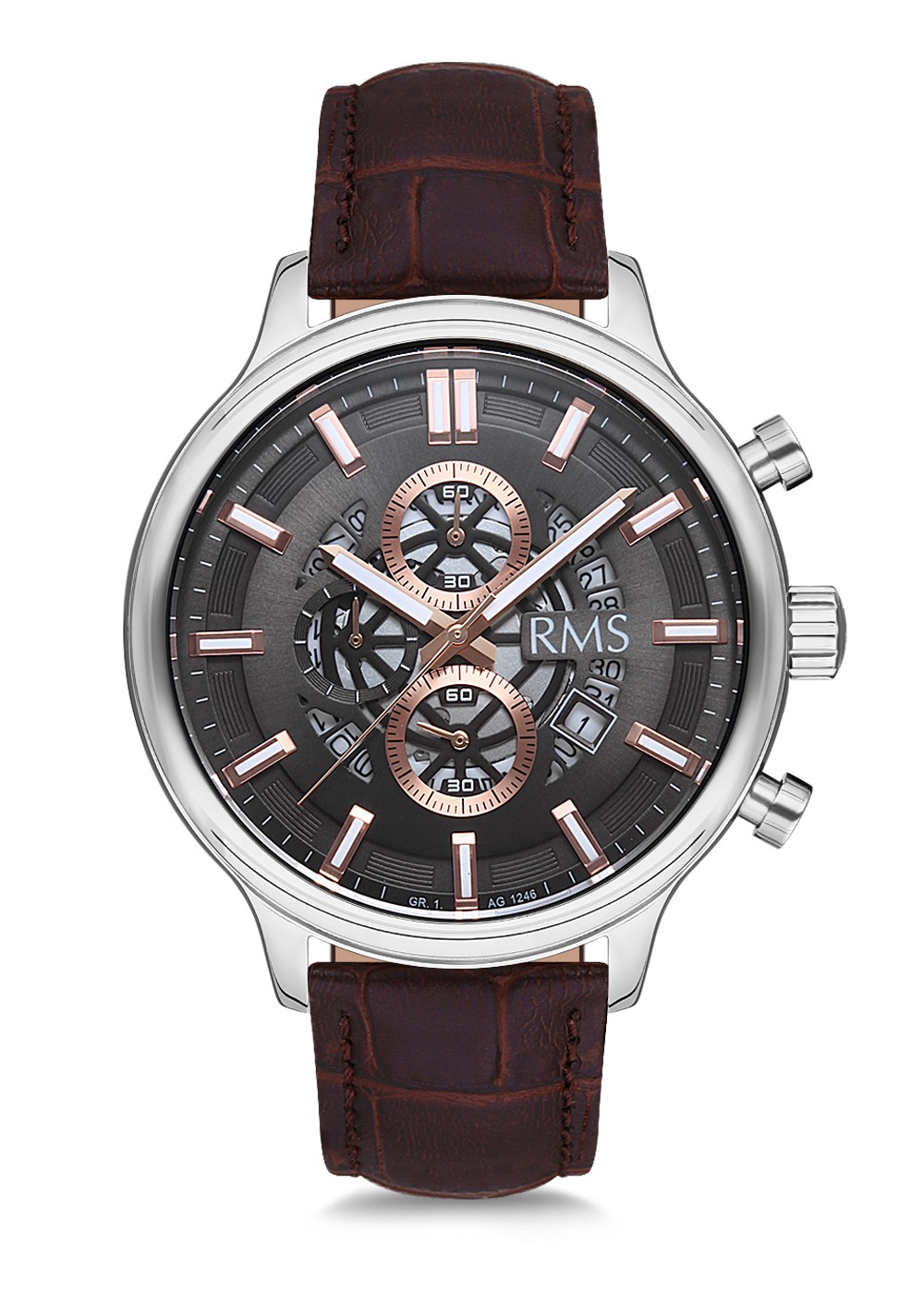 Erkek - Kronometre - Gümüş - Gri̇ - Doğal Deri̇ Kordon - Kahverengi̇ - 3 Atm - Sertleşti̇ri̇lmi̇ş Mi̇neral Cam - Grand Romanson