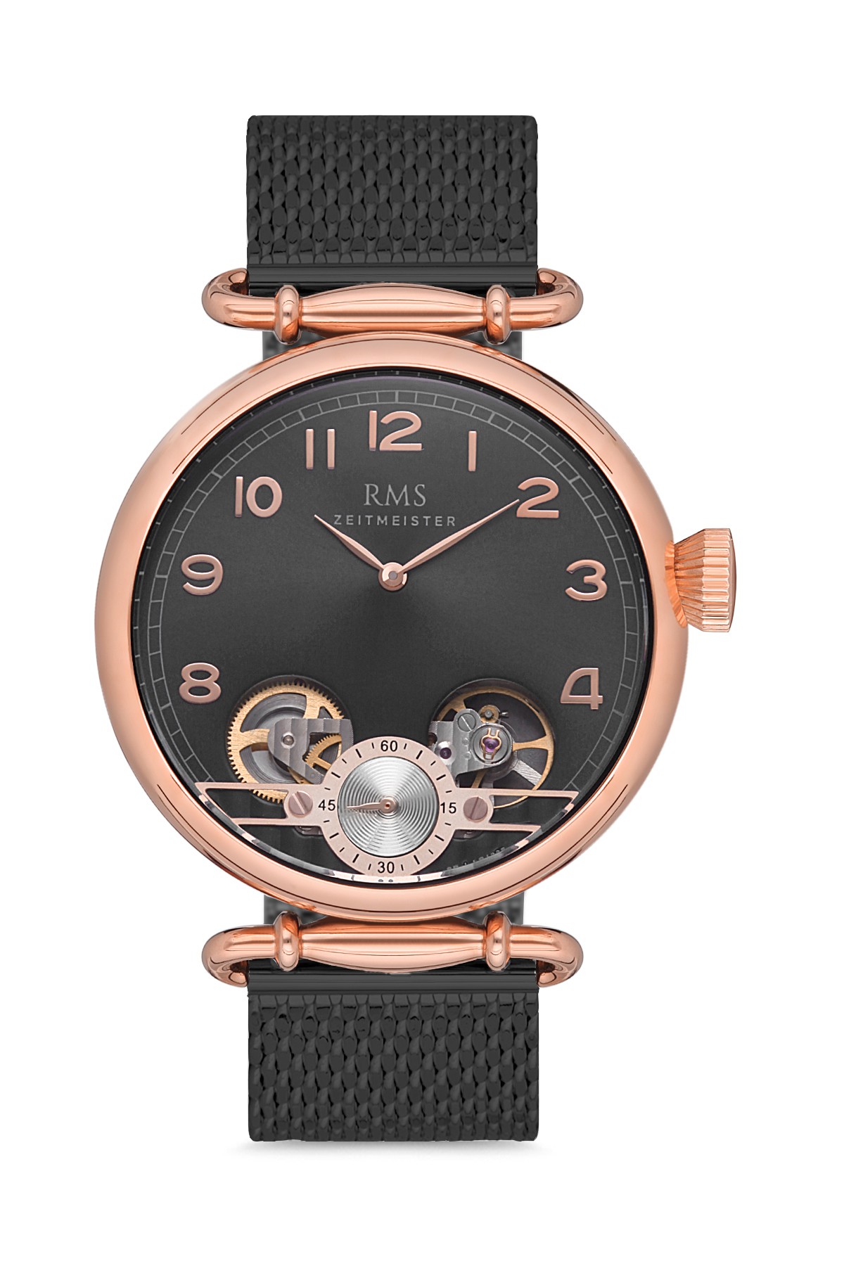 Erkek - Alttan Sani̇ye - Rose Si̇yah - Si̇yah - Çeli̇k Örme Kordon - 3 Atm - Sertleşti̇ri̇lmi̇ş Mi̇neral Cam - Grand Romanson - 44