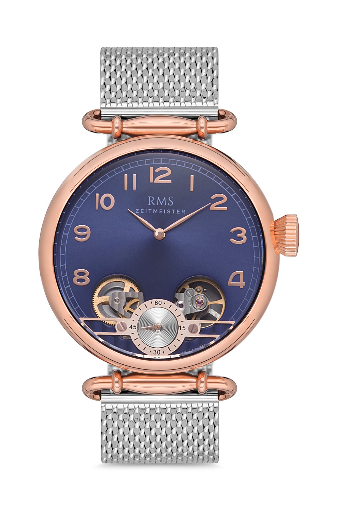 Erkek - Alttan Sani̇ye - Rose Beyaz - Mavi̇ - Çeli̇k Örme Kordon - 3 Atm - Sertleşti̇ri̇lmi̇ş Mi̇neral Cam - Grand Romanson - 44