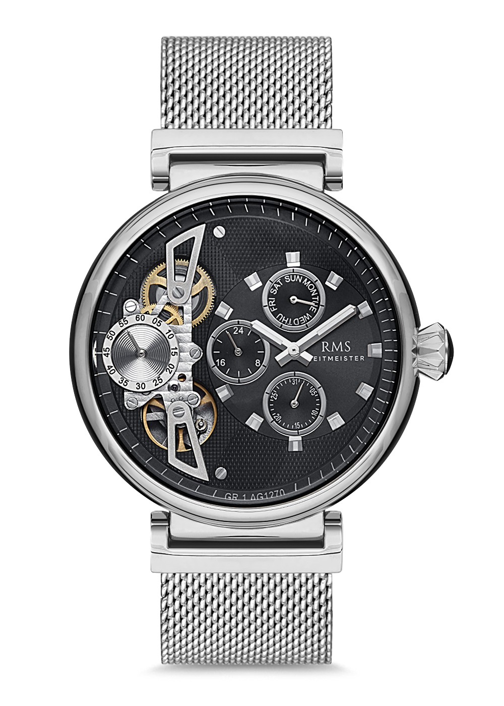 Erkek - Multi̇ Fonksi̇yon - Gümüş - Si̇yah - Çeli̇k Örme Kordon - 3 Atm - Sertleşti̇ri̇lmi̇ş Mi̇neral Cam - Grand Romanson
