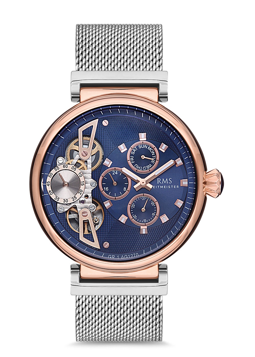 Erkek - Multi̇ Fonksi̇yon - Rose Beyaz - Mavi̇ - Çeli̇k Örme Kordon - 3 Atm - Sertleşti̇ri̇lmi̇ş Mi̇neral Cam - Grand Romanson