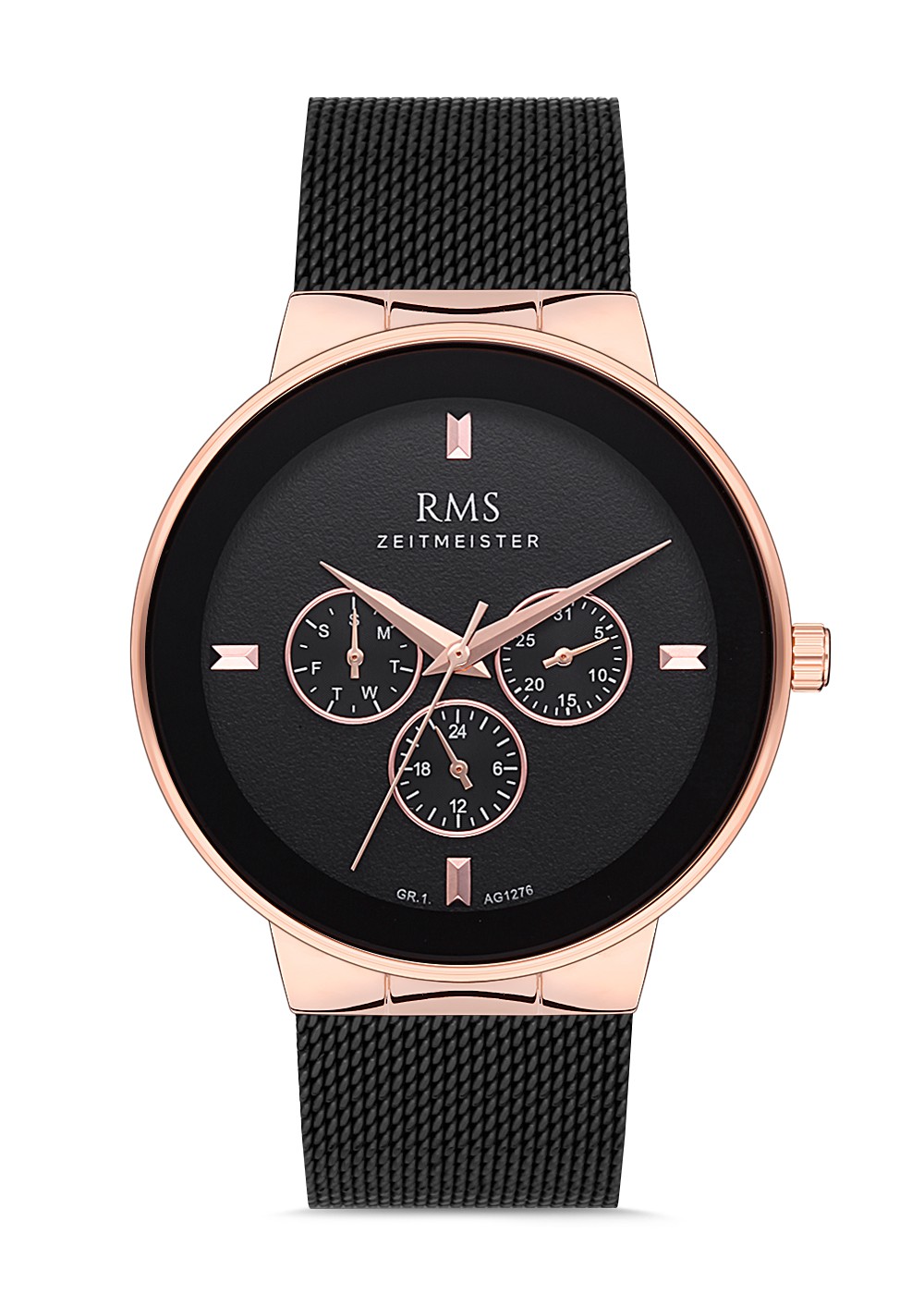 Erkek - Multi̇ Fonksi̇yon - Rose - Si̇yah - Çeli̇k Örme Kordon - 3 Atm - Sertleşti̇ri̇lmi̇ş Mi̇neral Cam - Grand Romanson