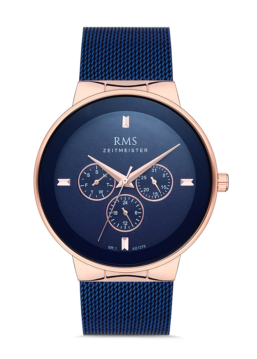 Erkek - Multi̇ Fonksi̇yon - Rose Mavi̇ - Mavi̇ - Çeli̇k Örme Kordon - 3 Atm - Sertleşti̇ri̇lmi̇ş Mi̇neral Cam - Grand Romanson