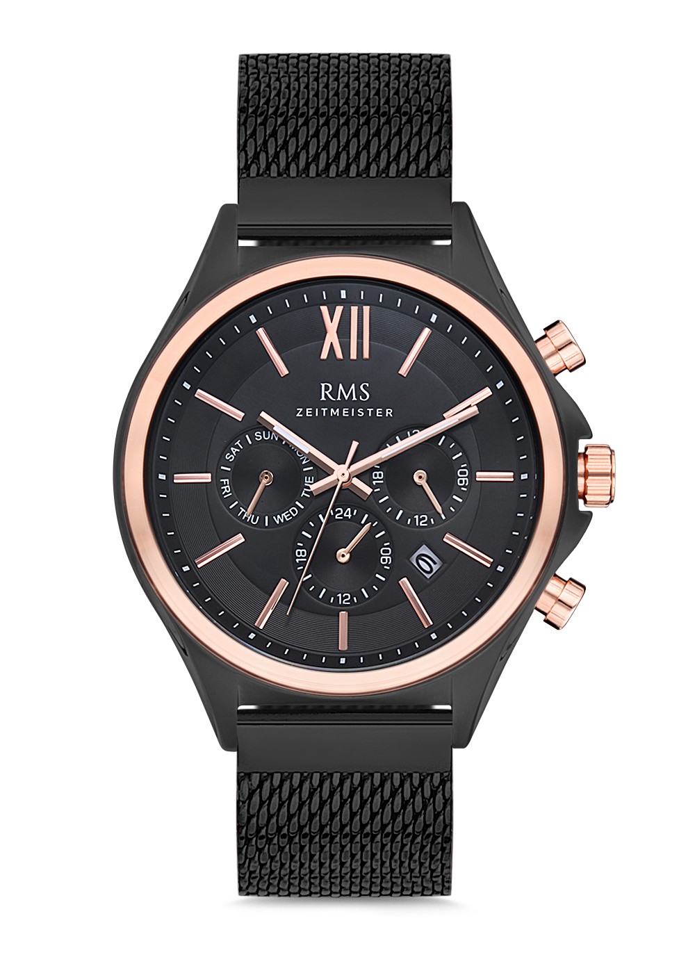 Erkek - Kronometre - Rose Si̇yah - Si̇yah - Çeli̇k Örme Kordon - 3 Atm - Sertleşti̇ri̇lmi̇ş Mi̇neral Cam - Grand Romanson