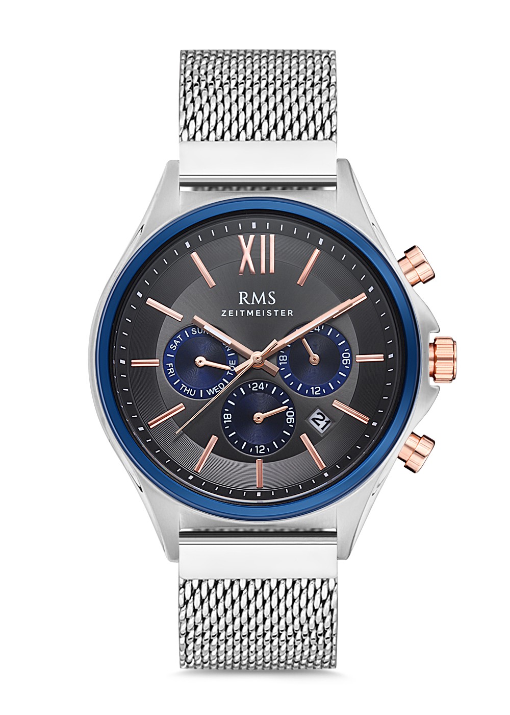 Erkek - Kronometre - Gümüş Mavi̇ - Gri̇ - Çeli̇k Örme Kordon - 3 Atm - Sertleşti̇ri̇lmi̇ş Mi̇neral Cam - Grand Romanson
