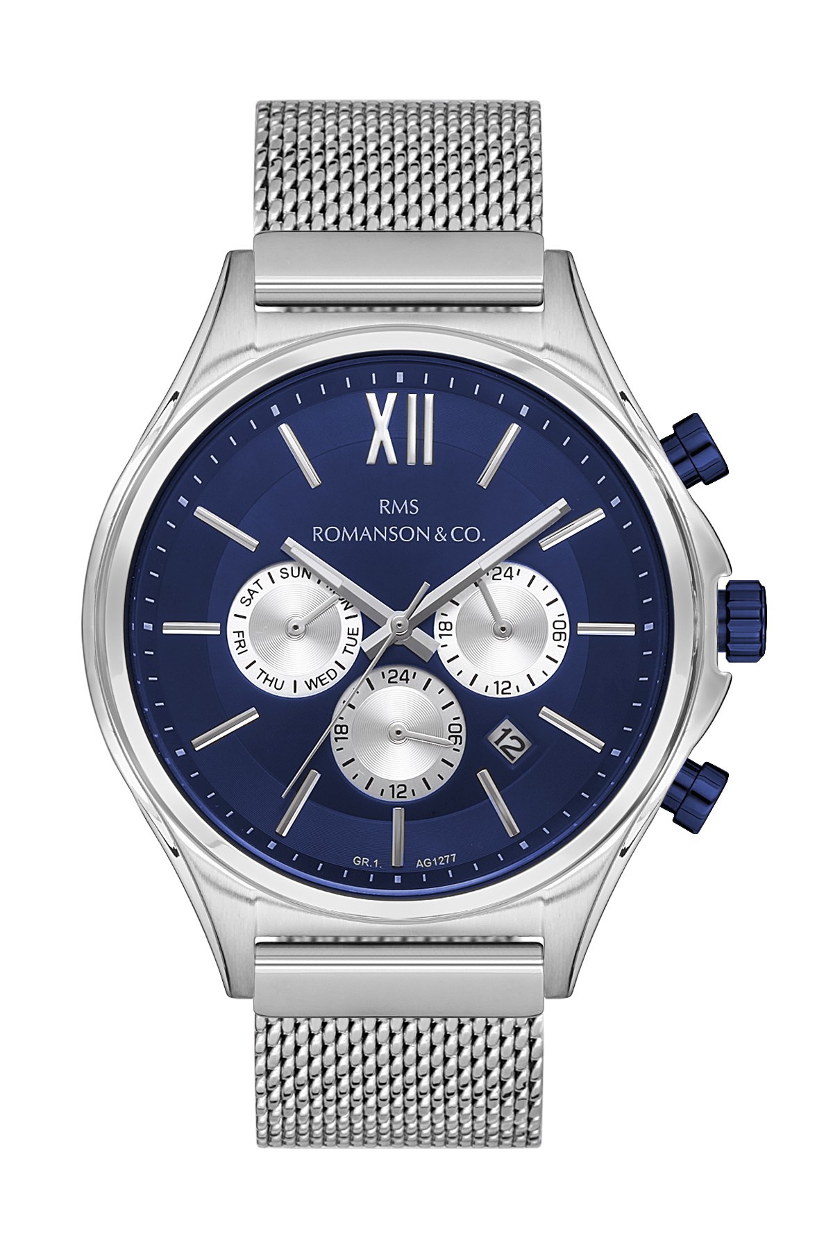 Erkek - Kronometre - Gümüş - Mavi̇ - Çeli̇k Örme Kordon - 3 Atm - Sertleşti̇ri̇lmi̇ş Mi̇neral Cam - Grand Romanson
