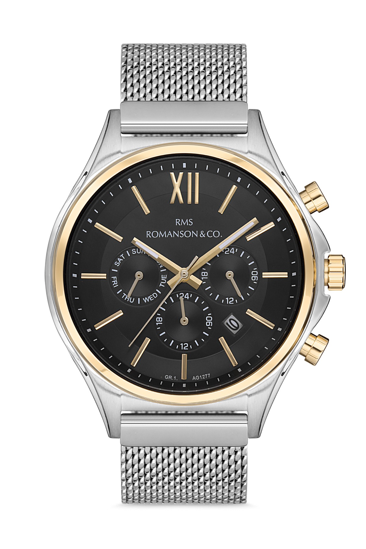 Erkek - Kronometre - Sari Beyaz - Si̇yah - Çeli̇k Örme Kordon - 3 Atm - Sertleşti̇ri̇lmi̇ş Mi̇neral Cam - Grand Romanson