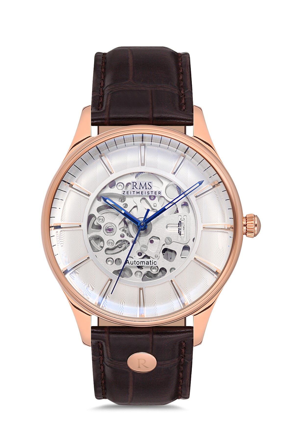 Erkek - Otomati̇k - Rose - Gümüş - Doğal Deri̇ Kordon - Kahverengi̇ - 3 Atm - Sertleşti̇ri̇lmi̇ş Mi̇neral Cam - Grand Romanson - 44
