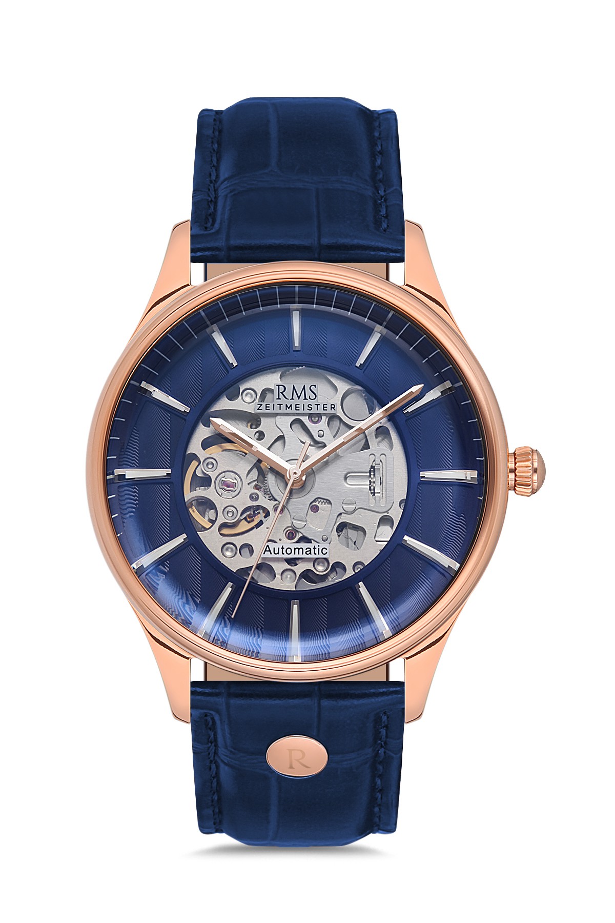 Erkek - Otomati̇k - Rose - Mavi̇ - Doğal Deri̇ Kordon - Mavi̇ - 3 Atm - Sertleşti̇ri̇lmi̇ş Mi̇neral Cam - Grand Romanson - 44