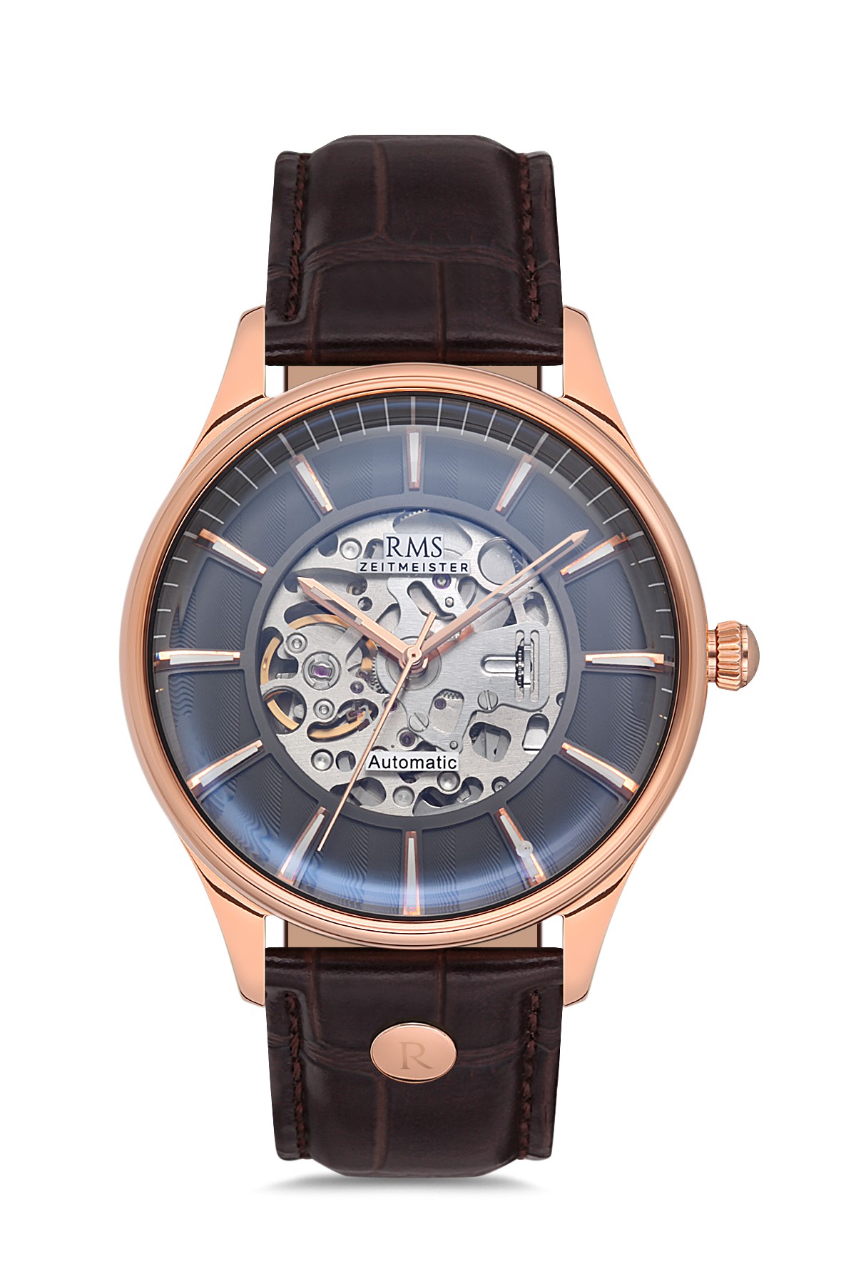 Erkek - Otomati̇k - Rose - Gri̇ - Doğal Deri̇ Kordon - Kahverengi̇ - 3 Atm - Sertleşti̇ri̇lmi̇ş Mi̇neral Cam - Grand Romanson - 44