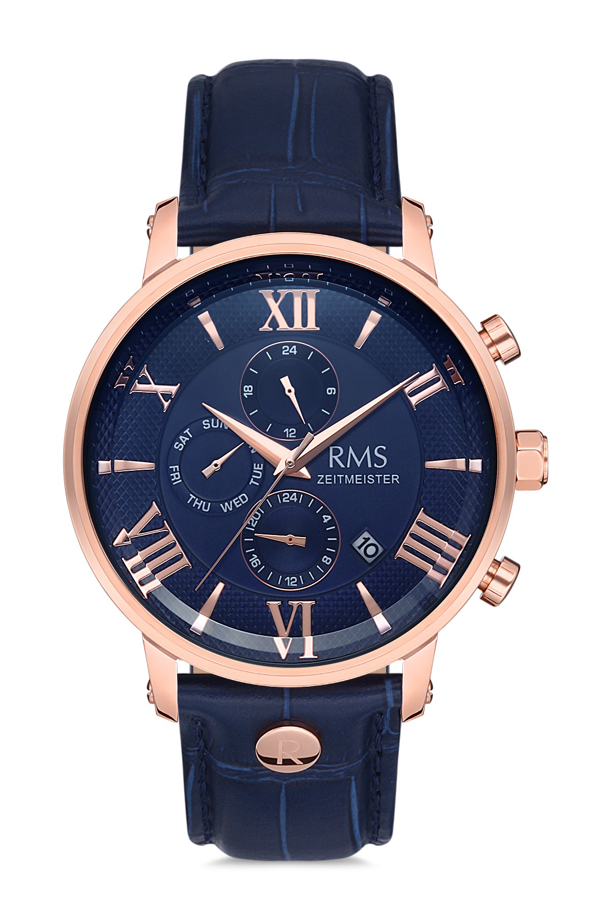 Erkek - Kronometre - Rose - Mavi̇ - Doğal Deri̇ Kordon - Mavi̇ - 3 Atm - Sertleşti̇ri̇lmi̇ş Mi̇neral Cam - Grand Romanson