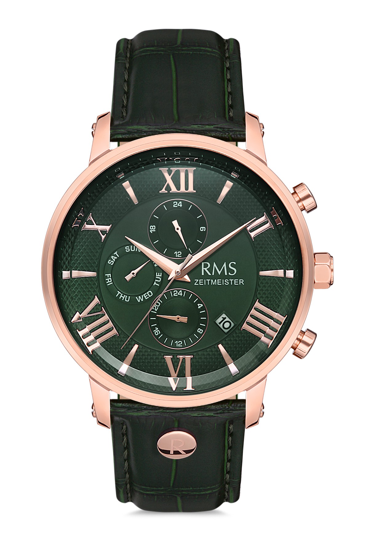 Erkek - Kronometre - Rose - Yeşi̇l - Doğal Deri̇ Kordon - Yeşi̇l - 3 Atm - Sertleşti̇ri̇lmi̇ş Mi̇neral Cam - Grand Romanson
