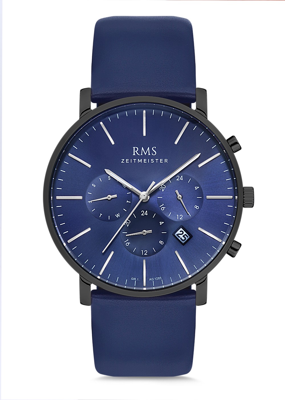 Erkek - Multi̇ Fonksi̇yon - Gun - Mavi̇ - Doğal Deri̇ Kordon - Mavi̇ - 3 Atm - Sertleşti̇ri̇lmi̇ş Mi̇neral Cam - Grand Romanson