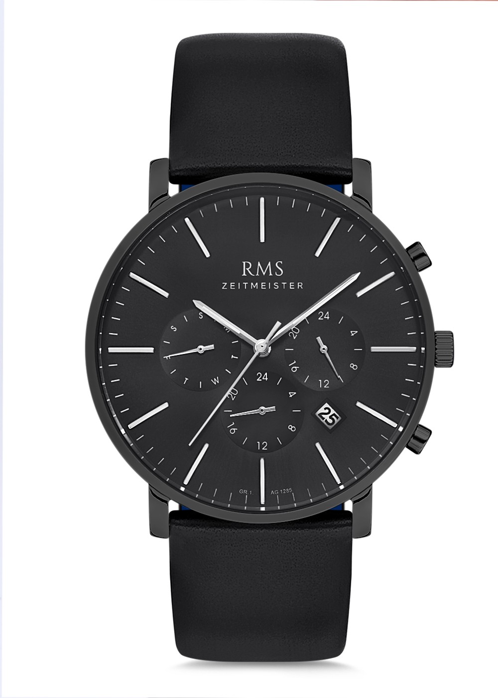 Erkek - Multi̇ Fonksi̇yon - Si̇yah - Si̇yah - Doğal Deri̇ Kordon - Si̇yah - 3 Atm - Sertleşti̇ri̇lmi̇ş Mi̇neral Cam - Grand Romanson