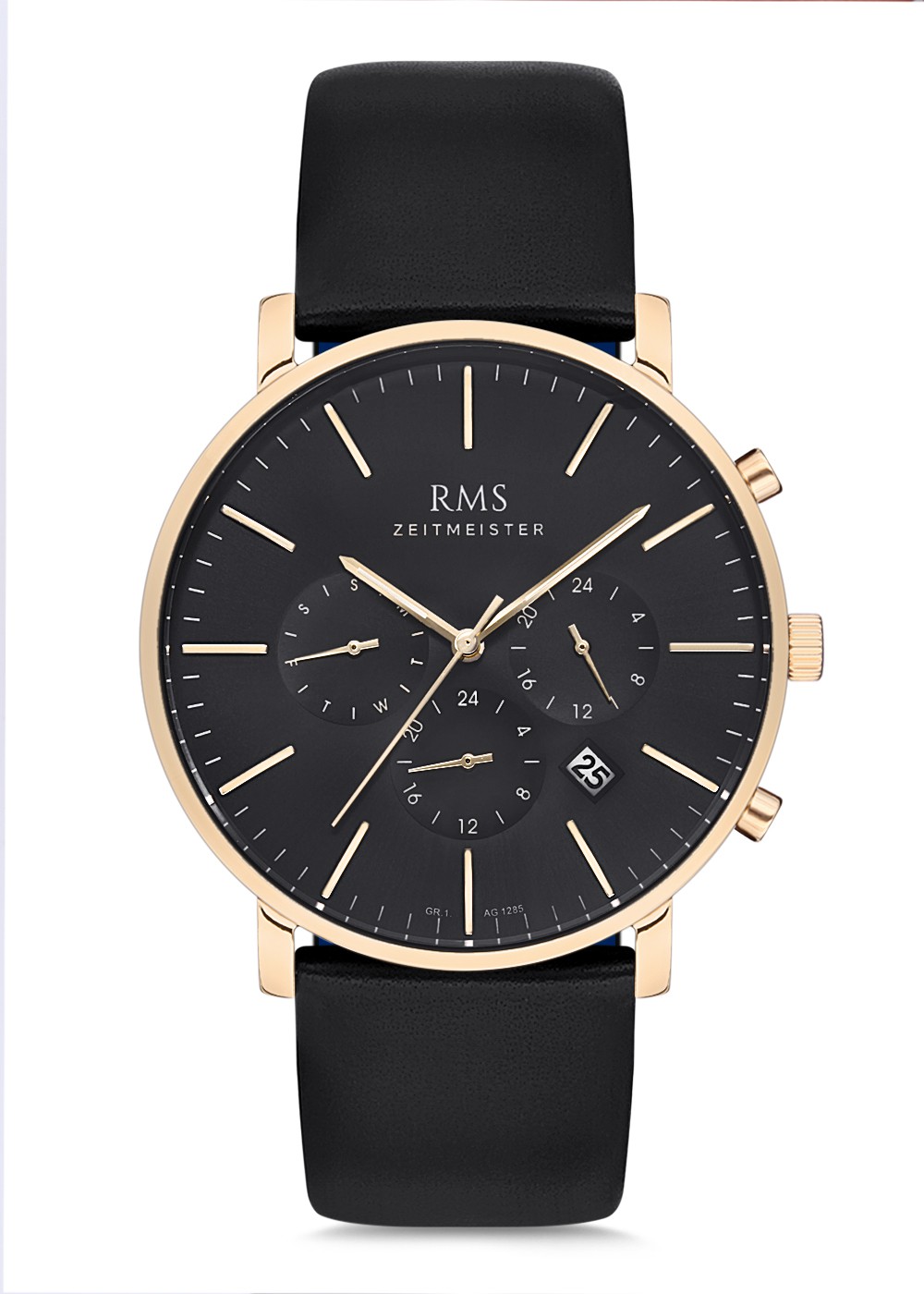 Erkek - Multi̇ Fonksi̇yon - Sari - Si̇yah - Doğal Deri̇ Kordon - Si̇yah - 3 Atm - Sertleşti̇ri̇lmi̇ş Mi̇neral Cam - Grand Romanson