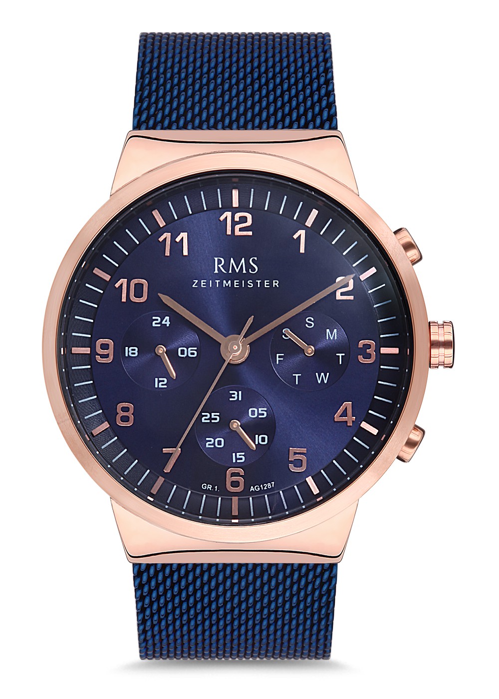 Erkek - Multi̇ Fonksi̇yon - Rose Mavi̇ - Mavi̇ - Çeli̇k Örme Kordon - 3 Atm - Sertleşti̇ri̇lmi̇ş Mi̇neral Cam - Grand Romanson - 43