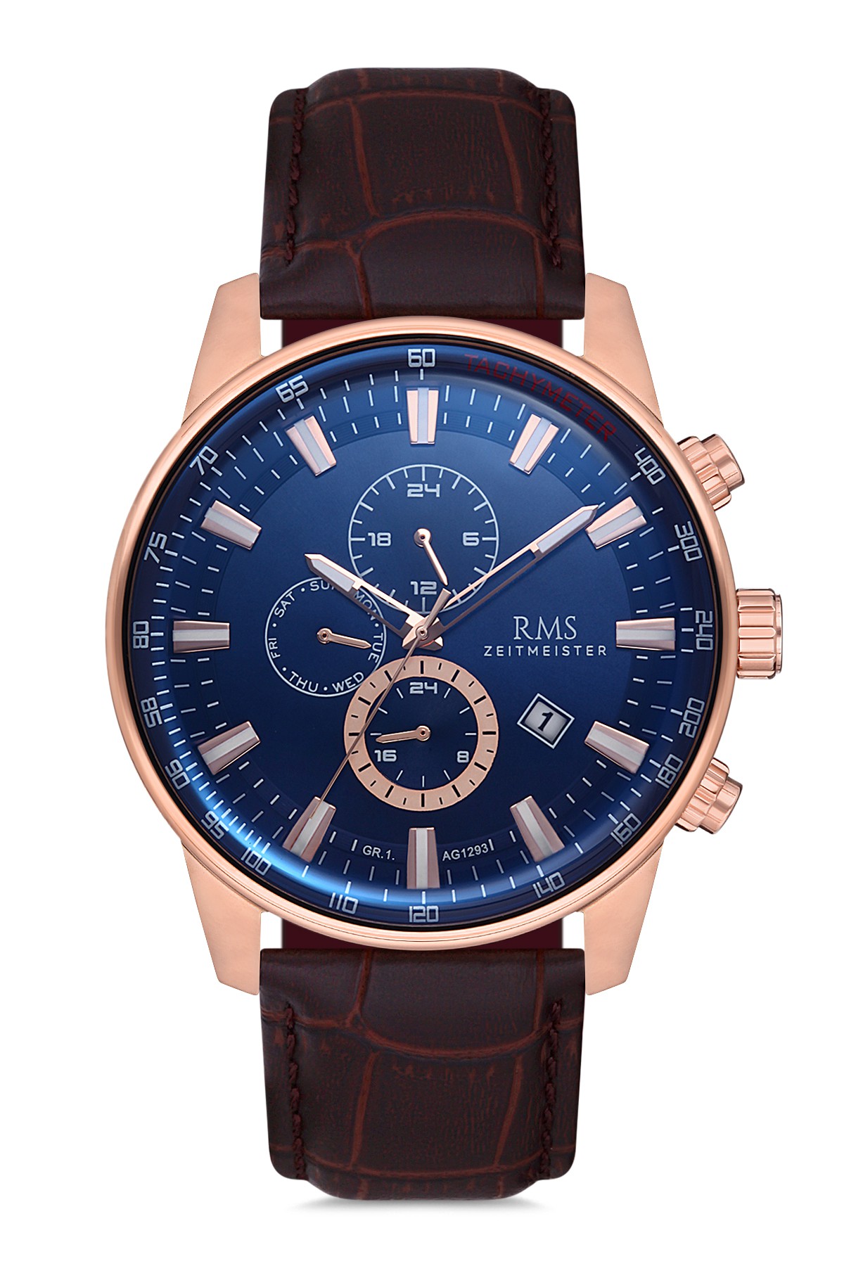 Erkek - Multi̇ Fonksi̇yon - Rose - Mavi̇ - Doğal Deri̇ Kordon - Kahverengi̇ - 3 Atm - Sertleşti̇ri̇lmi̇ş Mi̇neral Cam - Grand Romanson - 46