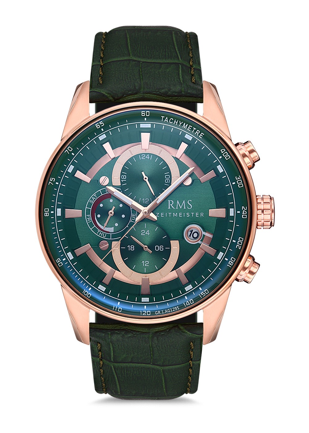 Erkek - Multi̇ Fonksi̇yon - Rose - Yeşi̇l - Doğal Deri̇ Kordon - Yeşi̇l - 3 Atm - Sertleşti̇ri̇lmi̇ş Mi̇neral Cam - Grand Romanson