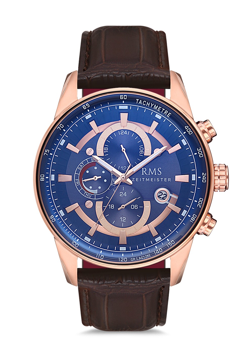 Erkek - Multi̇ Fonksi̇yon - Rose - Mavi̇ - Doğal Deri̇ Kordon - Kahverengi̇ - 3 Atm - Sertleşti̇ri̇lmi̇ş Mi̇neral Cam - Grand Romanson