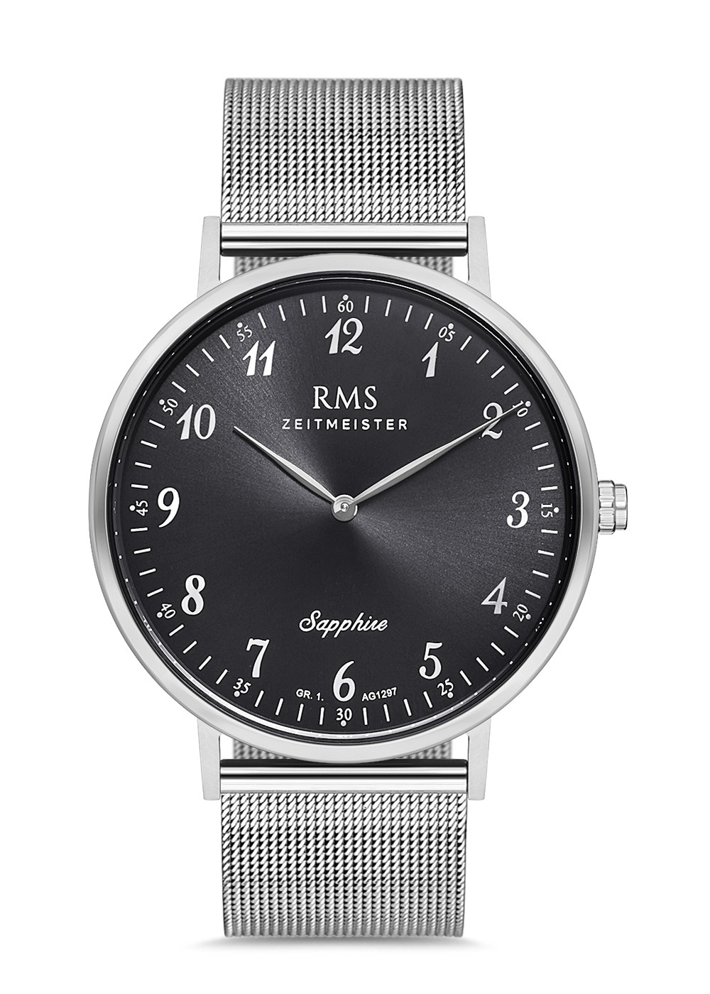 Erkek - Düz - Gümüş - Si̇yah - Çeli̇k Örme Kordon - 3 Atm - Sertleşti̇ri̇lmi̇ş Mi̇neral Cam - Grand Romanson
