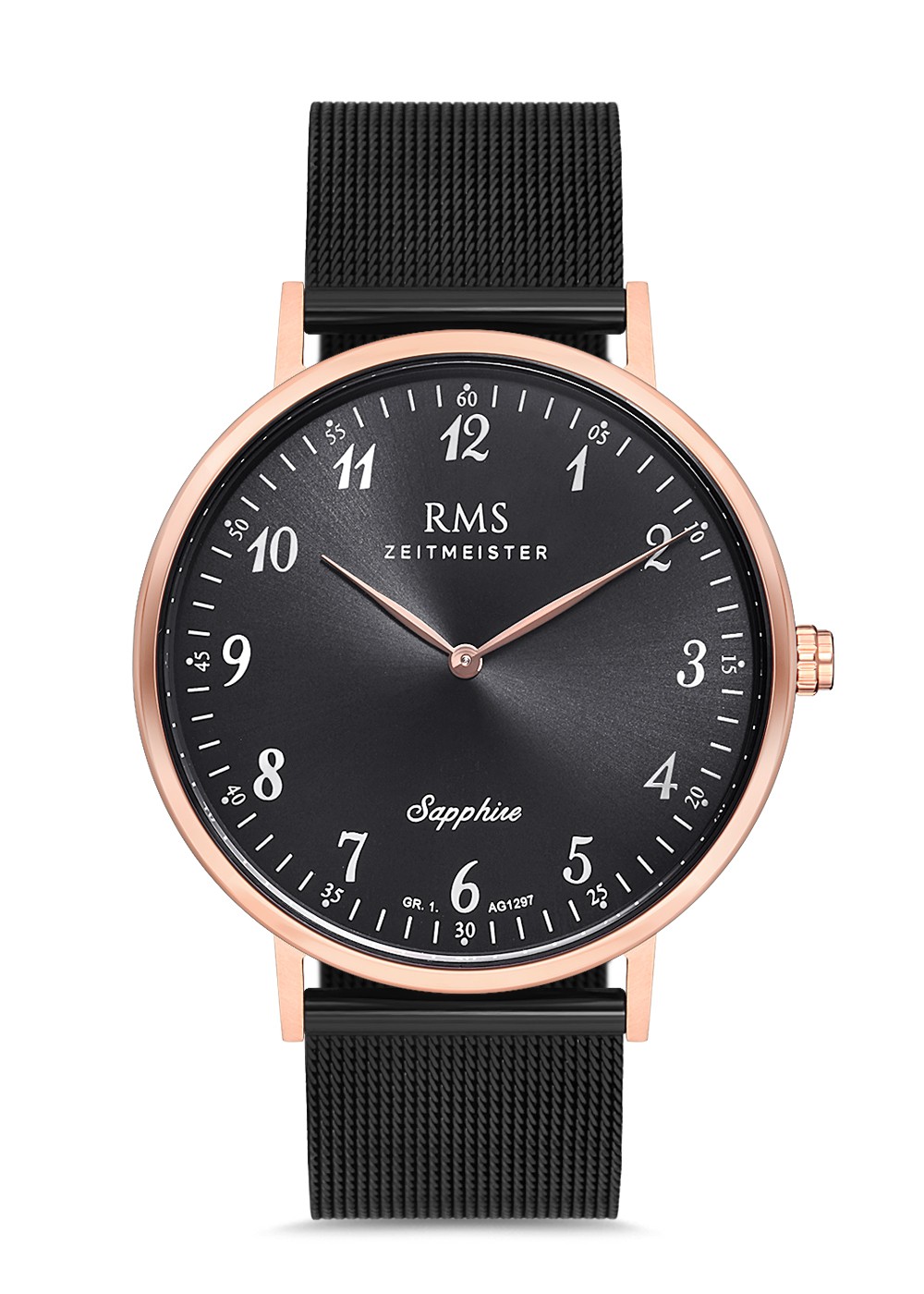Erkek - Düz - Rose Si̇yah - Si̇yah - Çeli̇k Örme Kordon - 3 Atm - Sertleşti̇ri̇lmi̇ş Mi̇neral Cam - Grand Romanson