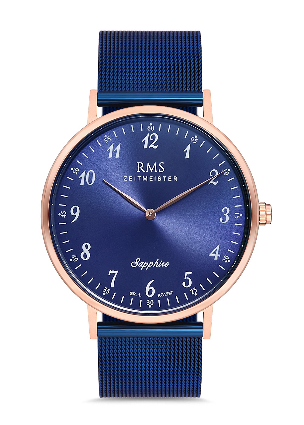 Erkek - Düz - Rose Mavi̇ - Mavi̇ - Çeli̇k Örme Kordon - 3 Atm - Sertleşti̇ri̇lmi̇ş Mi̇neral Cam - Grand Romanson
