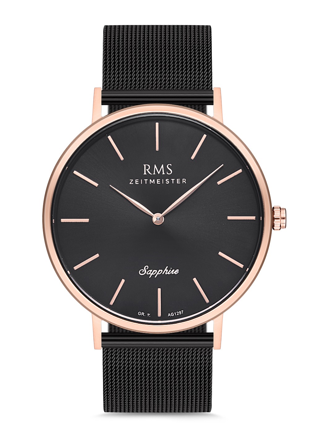 Erkek - Düz - Rose Si̇yah - Si̇yah - Çeli̇k Örme Kordon - 3 Atm - Sertleşti̇ri̇lmi̇ş Mi̇neral Cam - Grand Romanson