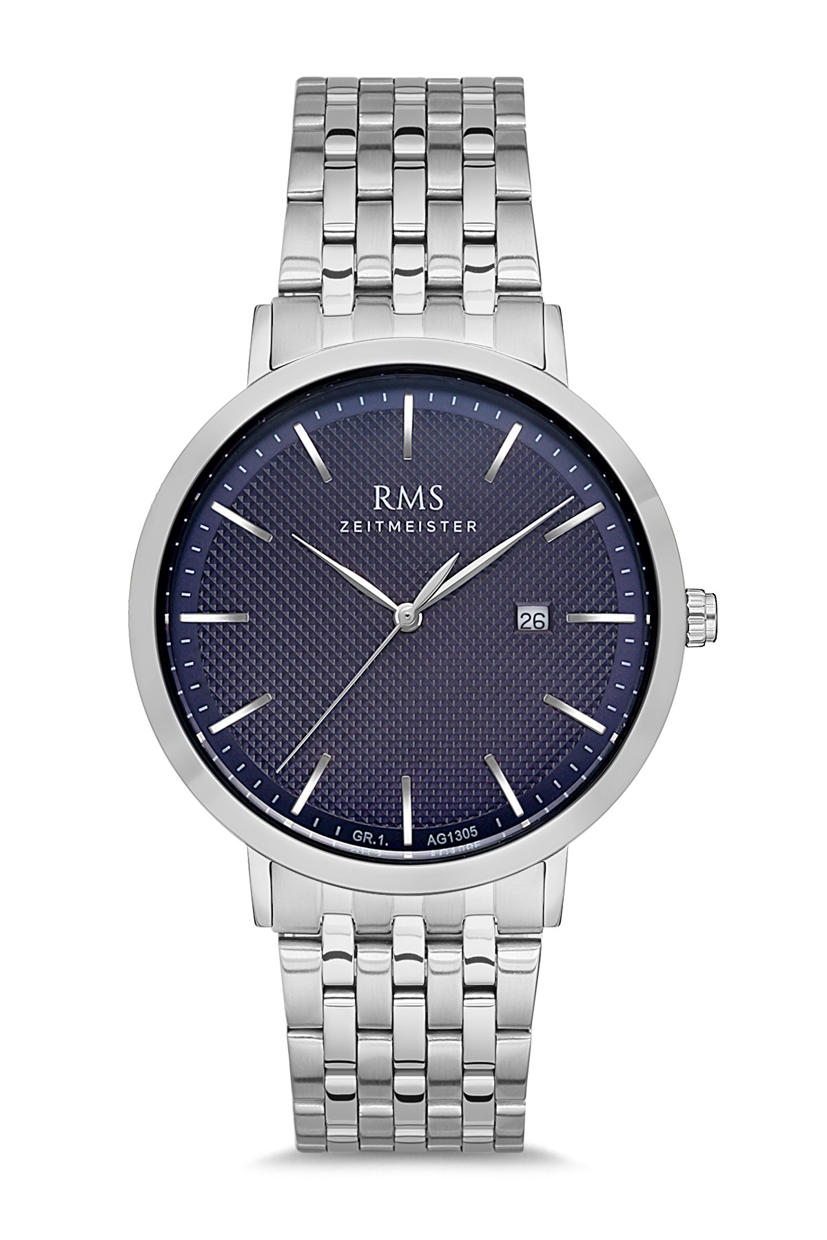 Erkek - Takvi̇mli̇ - Gümüş - Mavi̇ - Paslanmaz Masi̇f Çeli̇k - 3 Atm - Sertleşti̇ri̇lmi̇ş Mi̇neral Cam - Grand Romanson