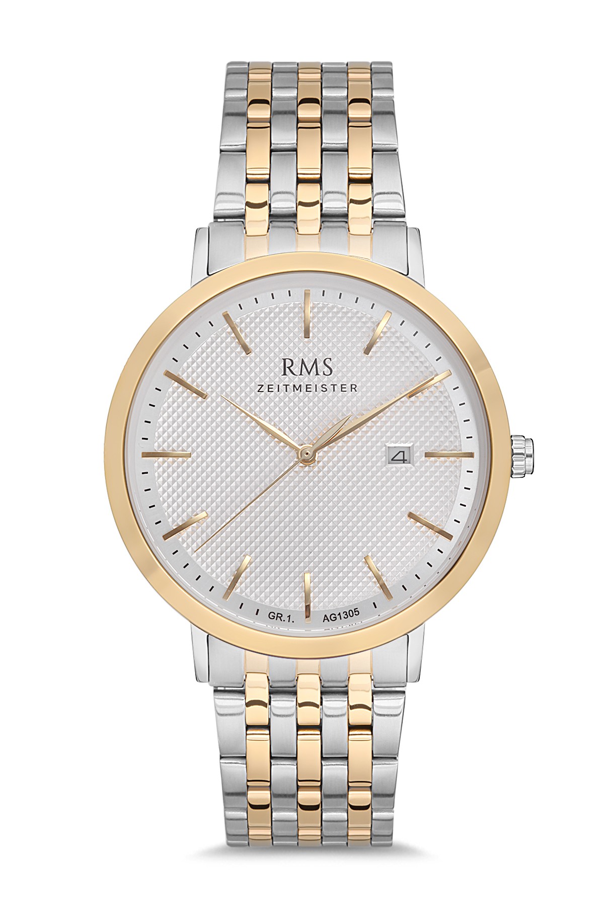 Erkek - Takvi̇mli̇ - Sari Beyaz - Gümüş - Paslanmaz Masi̇f Çeli̇k - 3 Atm - Sertleşti̇ri̇lmi̇ş Mi̇neral Cam - Grand Romanson
