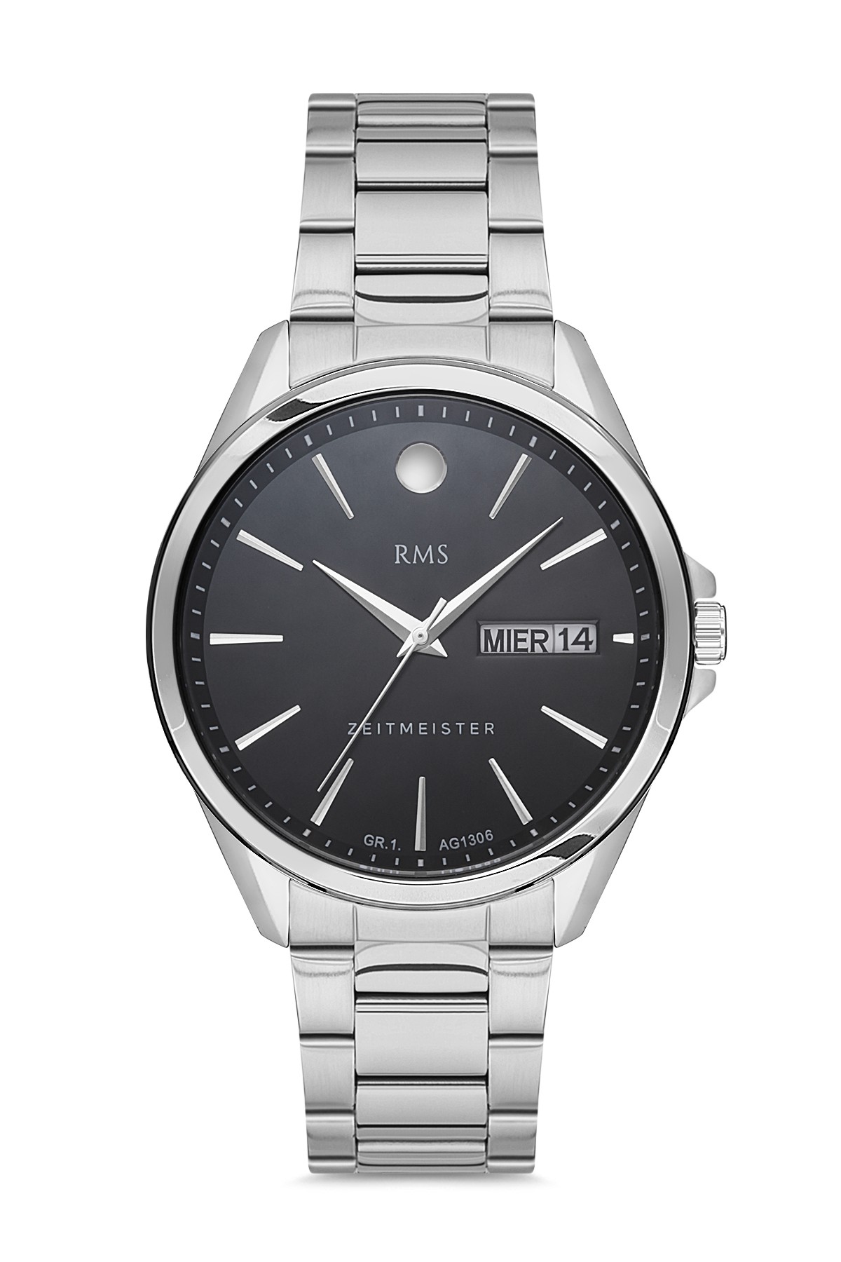 Erkek - Takvi̇mli̇ - Gümüş - Si̇yah - Paslanmaz Masi̇f Çeli̇k - 3 Atm - Sertleşti̇ri̇lmi̇ş Mi̇neral Cam - Grand Romanson