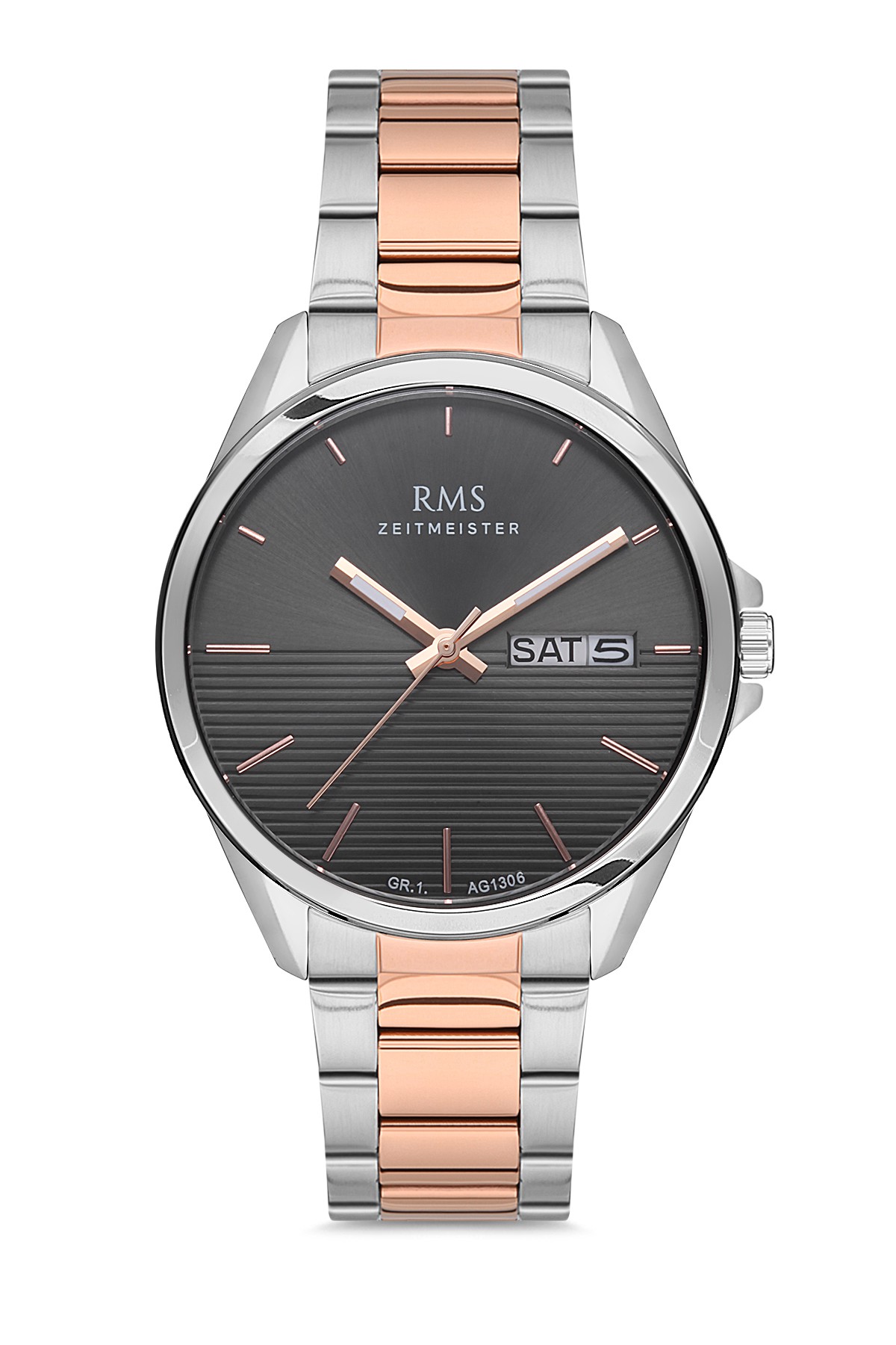 Erkek - Takvi̇mli̇ - Rose Beyaz - Gri̇ - Paslanmaz Masi̇f Çeli̇k - 3 Atm - Sertleşti̇ri̇lmi̇ş Mi̇neral Cam - Grand Romanson - 42