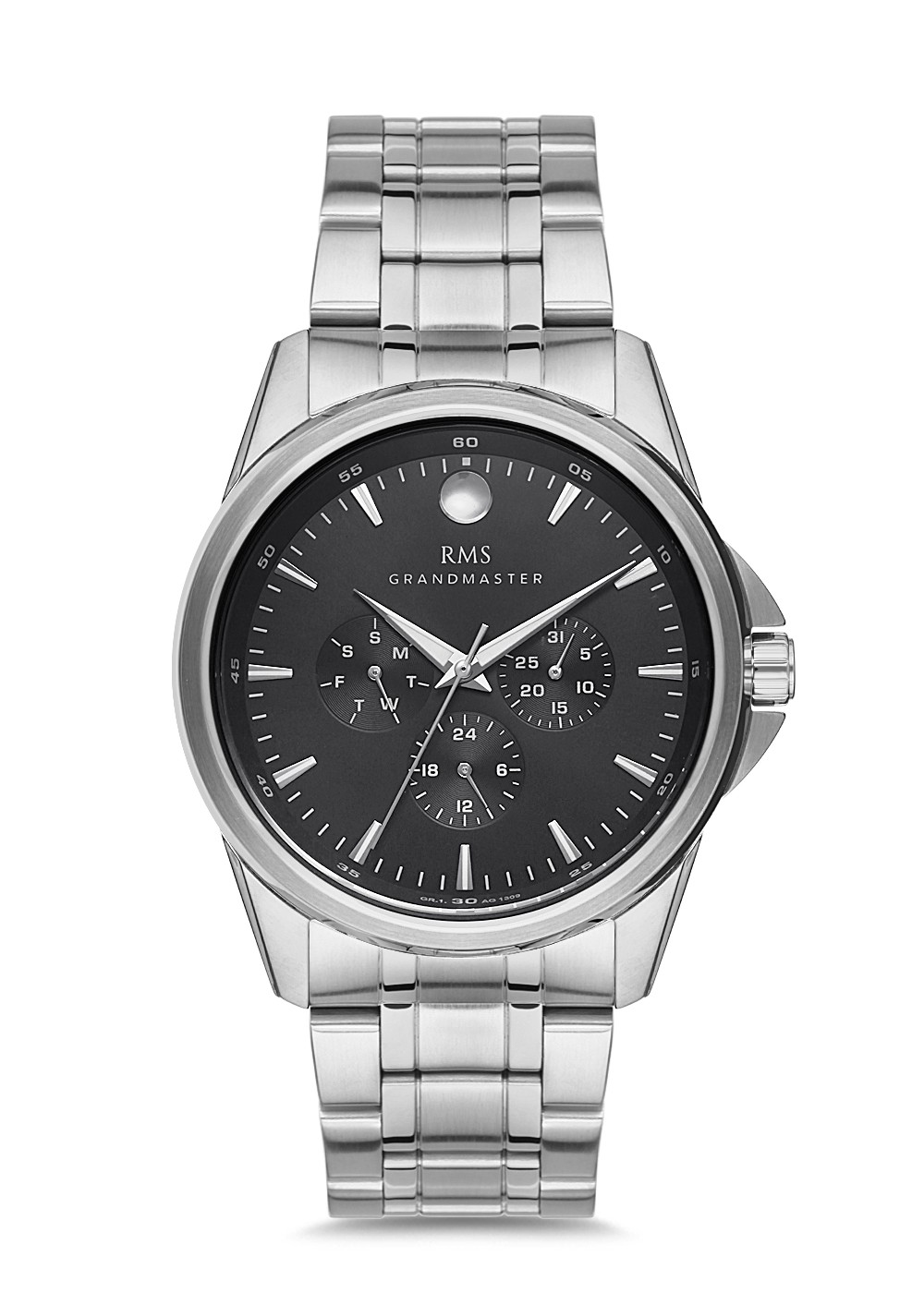 Erkek - Multi̇ Fonksi̇yon - Gümüş - Si̇yah - Paslanmaz Masi̇f Çeli̇k - 3 Atm - Sertleşti̇ri̇lmi̇ş Mi̇neral Cam - Grand Romanson - 42