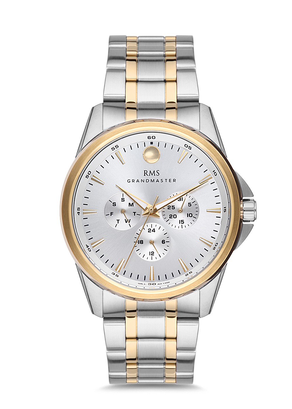 Erkek - Multi̇ Fonksi̇yon - Sari Beyaz - Gümüş - Paslanmaz Masi̇f Çeli̇k - 3 Atm - Sertleşti̇ri̇lmi̇ş Mi̇neral Cam - Grand Romanson - 42