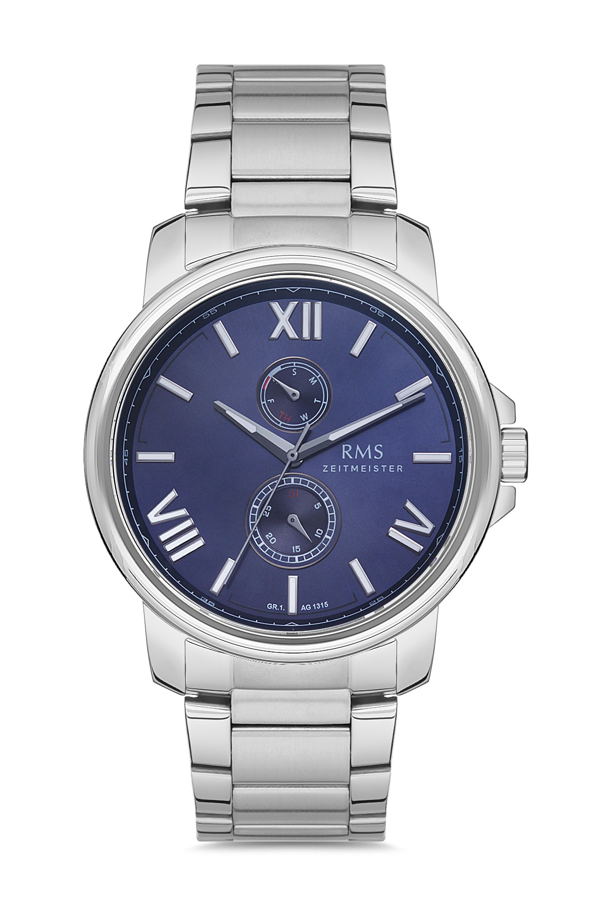 Erkek - Multi̇ Fonksi̇yon - Gümüş - Mavi̇ - Paslanmaz Masi̇f Çeli̇k - 3 Atm - Sertleşti̇ri̇lmi̇ş Mi̇neral Cam - Grand Romanson
