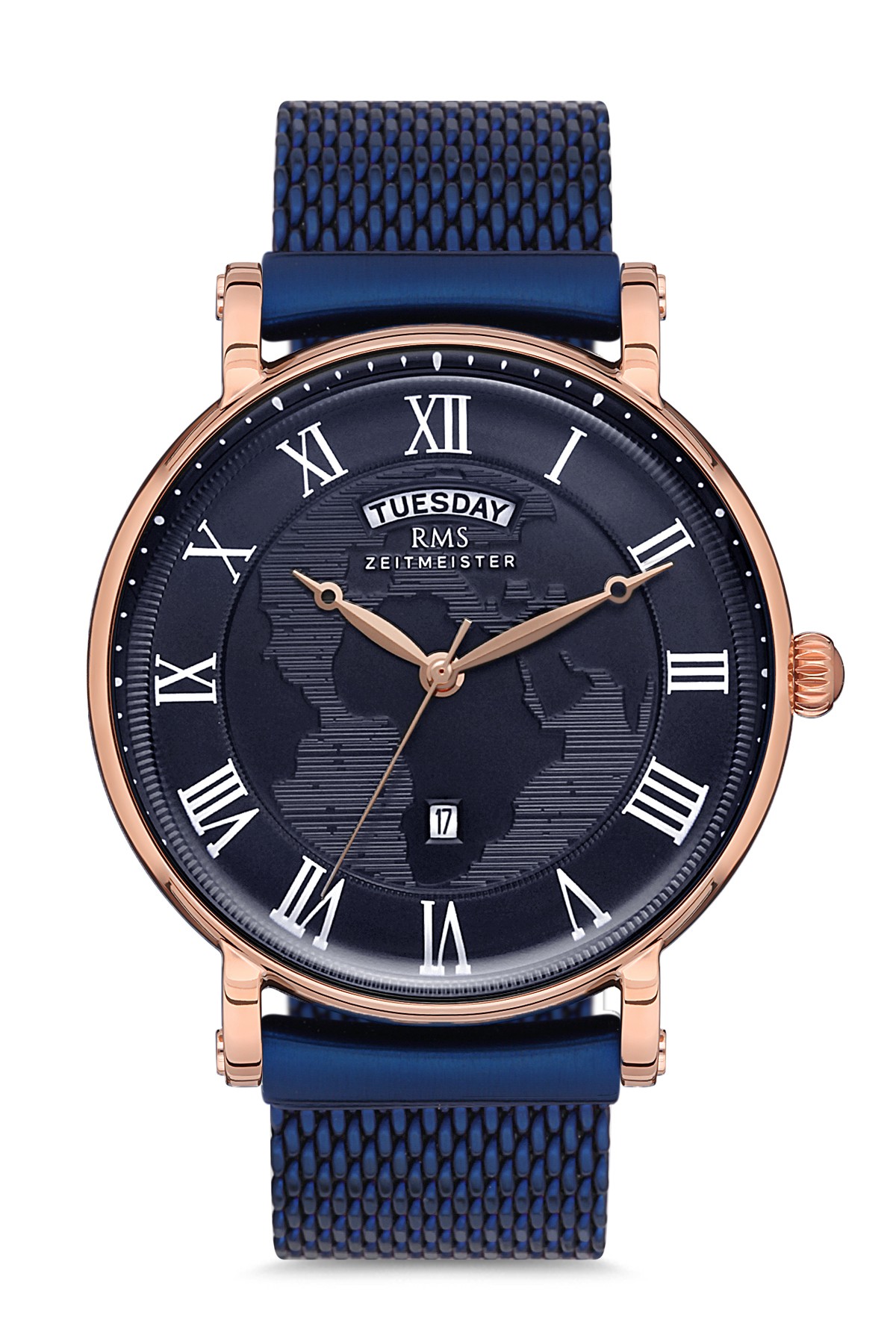Erkek - Takvi̇mli̇ - Rose Mavi̇ - Mavi̇ - Çeli̇k Örme Kordon - 3 Atm - Sertleşti̇ri̇lmi̇ş Mi̇neral Cam - Grand Romanson