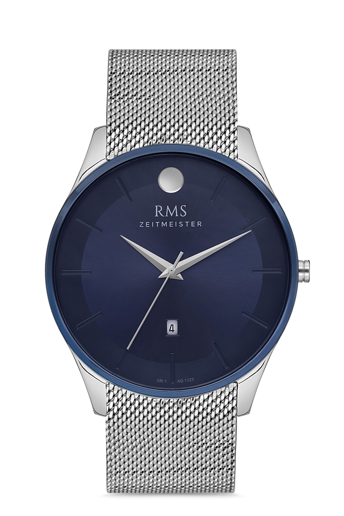 Erkek - Takvi̇mli̇ - Gümüş Mavi̇ - Mavi̇ - Çeli̇k Örme Kordon - 3 Atm - Sertleşti̇ri̇lmi̇ş Mi̇neral Cam - Grand Romanson