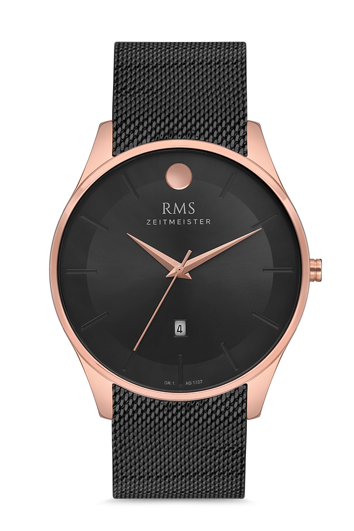 Erkek - Takvi̇mli̇ - Rose Si̇yah - Si̇yah - Çeli̇k Örme Kordon - 3 Atm - Sertleşti̇ri̇lmi̇ş Mi̇neral Cam - Grand Romanson