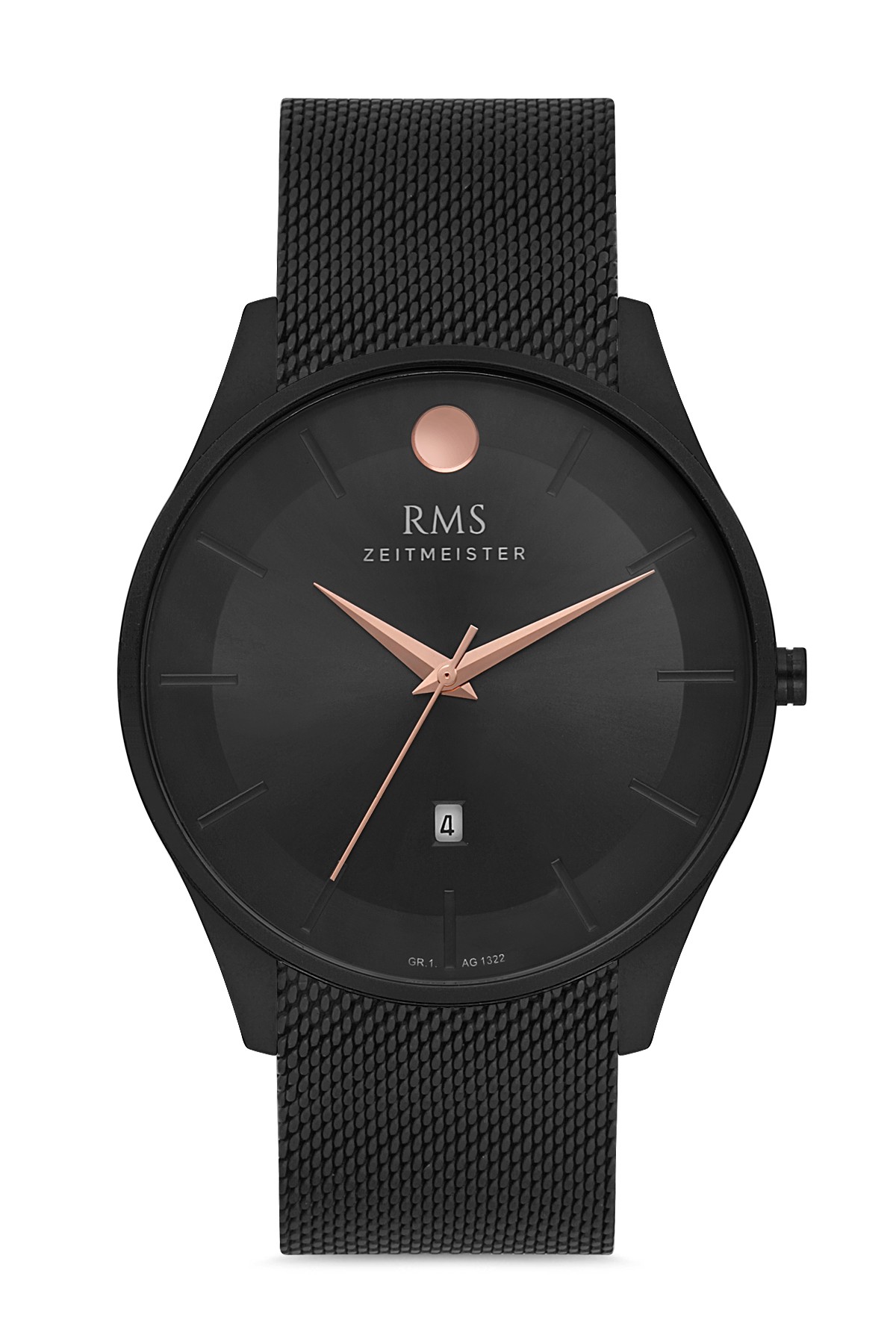 Erkek - Takvi̇mli̇ - Si̇yah - Si̇yah - Çeli̇k Örme Kordon - 3 Atm - Sertleşti̇ri̇lmi̇ş Mi̇neral Cam - Grand Romanson