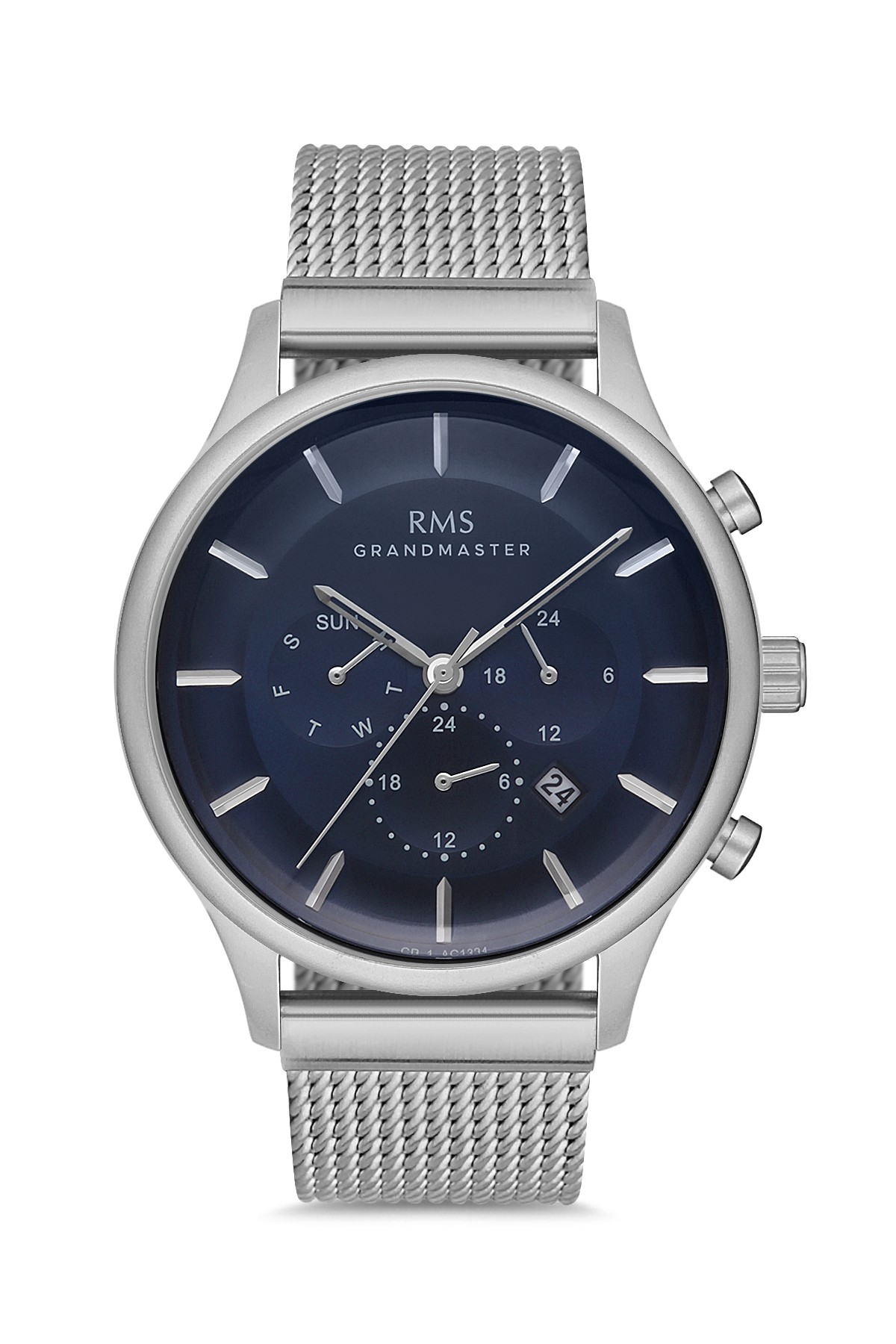 Erkek - Multi̇ Fonksi̇yon - Gümüş - Mavi̇ - Çeli̇k Örme Kordon - 3 Atm - Sertleşti̇ri̇lmi̇ş Mi̇neral Cam - Grand Romanson